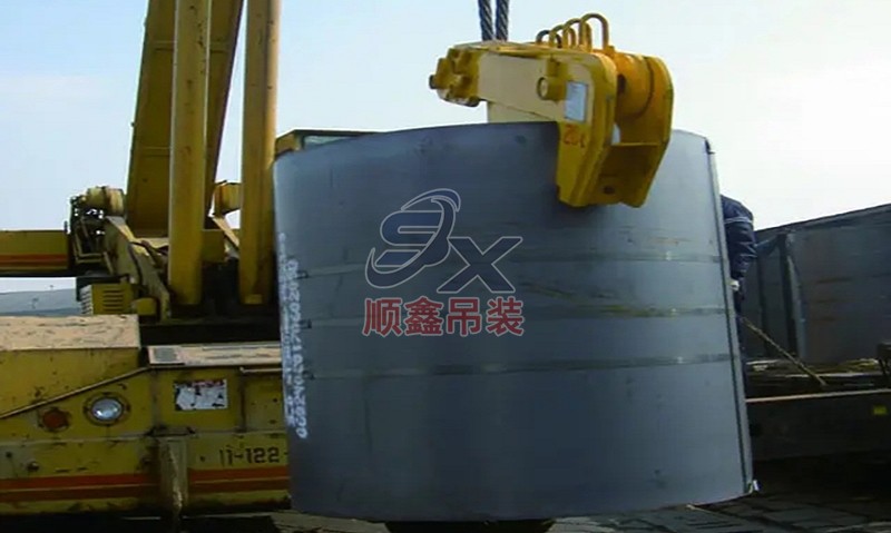 C型吊具適用于鋼卷的水平吊運(yùn),由吊具體和配重鐵組成。主體部分由合金鋼和鋼管拼接而成,截面為箱型結(jié)構(gòu),配重鐵起調(diào)節(jié)吊具平衡的作用,使吊具和被吊物的重心在一條線內(nèi)。載荷范圍:3.2-32噸。